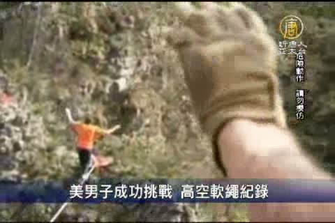 【新唐人亞太台2012年4月23日訊】美國人迪恩‧波特22號在中國湖北恩施大峽谷海拔1800米高的雙壁懸崖上,在沒有任何保護措施的情況下,僅僅靠著一根軟繩,高空行走41米獲得成功,刷新了世界記錄。