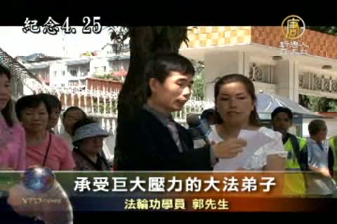 法輪功學員 郭先生:「425標誌著大法弟子以正義、正信、理性反迫害的開始。十三年過去了,面對中共滅絕人性的血腥迫害,在苦難中承受巨大壓力的大法弟子仍舊帶著慈悲和善念、寬容的胸懷,勇敢堅韌地向世人講真相,弘揚大法、揭露中共的迫害真相。」「我們誠摯呼籲馬來西亞政府和各界人士,明辨是非,不要盲目追隨一個行將就木的政權,做出違反天理的事,協助法輪功學員反迫害,才是順天意而行的明智之舉。」