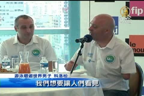 【新唐人亞太台2012年4月25日訊】曾經成功橫渡英吉利海峽沒有四肢的法國男子科洛松,星期二再度宣布,他要環遊世界,橫渡五大洲水域的目標。