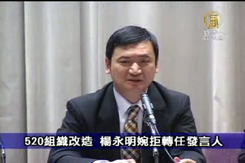 配合政府組織改造,行政院長陳?520前依慣例將率內閣總辭,新聞局解編併入文化部、外交部,文化部520同步掛牌運作,行政院也將增設發言人,末代新聞局長楊永明已向高層婉拒轉任行政院發言人的安排。