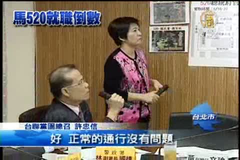 【新唐人亞太台2012年4月27日訊】520前夕,因為不滿520總統就職典禮,周邊的路權被擴大管制。台聯黨團今天(27日)批評,馬總統像是在搞戒嚴,不願意聽見遊行民眾的聲音,台聯甚至質疑,負責維持就職典禮秩序的警政署,可能就是受到高層的壓力,才會對他們申請路權,處處刁難。