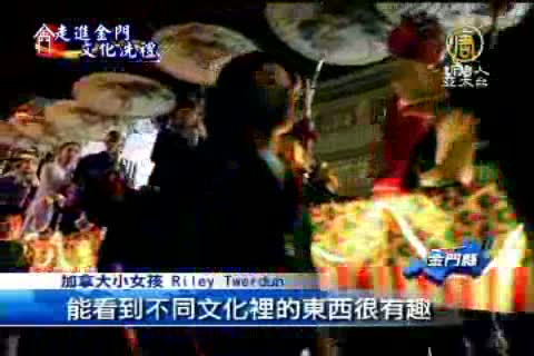 為了迎接即將到來的迎城隍慶典,每逢假日晚上,金門都有一場踩街遊行,跟家人來金門旅遊的十歲加拿大女孩,開心的看見了難得一見的東方民間活動。