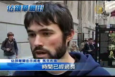 佔領華爾街示威者 馬克布雷:「人們已經受夠了。最上層百分之一人士做的事情,在這個國家的控制運行模式,時間已經過長,正常途徑下我們政府並沒有解決問題,所以我們需要走上街頭,提高聲音告訴他們,我們不會忍受下去了。」