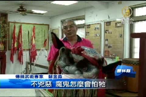 【新唐人亞太台2012年5月2日訊】繼續我們帶您到雲林,去認識一位知名傳統武術家蘇金淼,在世界各國的徒子徒孫非常多,不管是南拳或是北拳兵器,甚至福建獅都十分嫻熟,雖然年過花甲,但打起武術,依舊是 ,精氣神十足。