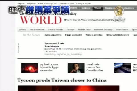 2012-04-09 21:38:29新聞焦點,轉回台灣。學界持續要求,蔡衍明出席旺中跨媒體併購聽證會之際。旺中媒體集團日前發出通告,懸賞百萬元,說是希望各界揪出批評旺中向中共靠攏的記者「錢衷時」。對此,前中時副總編輯馮光遠在部落格上發文批評,還拿著「錢衷時」的牌子「自首」,嘲諷蔡衍明。