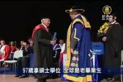 【新唐人亞太台2012年5月5日訊】很多人說「活到老、學到老」,澳洲一位今年97歲的老先生再次證明了「學習永不嫌晚」這句諺語,第二次成為世界上最老的畢業生。這一次,他取得了南十字星大學的臨床科學碩士學位。讓我們一起來看看。