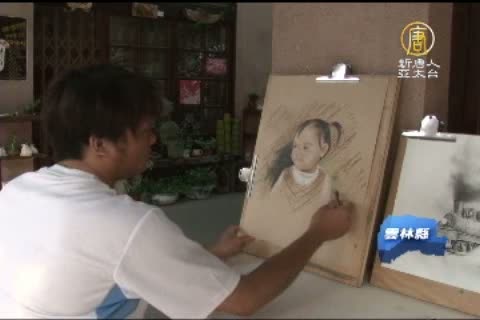 【新唐人亞太台2012年5月10日訊】雲林西螺延平老街東市場裡,多了一位年輕的駐站畫家,只憑著高職時美術社團的訓練,不管是人物速寫、寵物素描,還有Q版畫作,都可以在很短的時間裏完成, 作品相當受到民眾的喜愛。一起來看看。