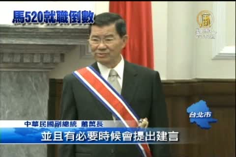 【新唐人亞太台2012年5月10日訊】五二零就職大典下周登場,今天(10日),總統馬英九親自頒贈中正勳章給副總統蕭萬長,感謝他多年來對國家社會的奉獻。蕭萬長說,這是他公職生涯的完美句點,他卸任後會以總統民間友人的身分,繼續奉獻。