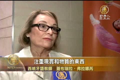 【新唐人亞太台2012年5月10日訊】看了美國神韻國際藝術團5月8日在德州聖安東尼奧的演出之後,觀眾感嘆,神韻真的是傳遞了神的文化,會讓更多的人凝聚在這樣的文化周圍。