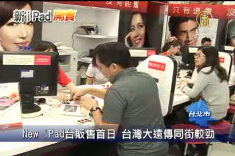 【新唐人亞太台2012年5月11日訊】New iPad在台販售首日,遠傳與台灣大哥大,都選擇在信義區的分店,舉行開賣活動,現場就有幸運的民眾,把New iPad免費帶回家,電信業者,也紛紛推出優惠方案,要來吸引消費者的目光。新iPad開賣,電信業者搶商機,力拼今年銷售40萬台。