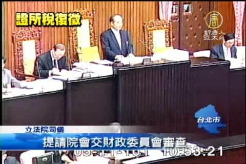【新唐人亞太台2012年5月11日訊】爭議不斷的證所稅,今天(11日)上午有驚無險,順利在立法院通過,交付財政委員會審議,民進黨團一早就宣布,他們不阻擋證所稅,但希望國民黨不要變來變去,而國民黨立委也認為,立院政院目前有多個版本,要推就該堅定立場,在藍綠一致的狀況下,證所稅案過了第一關。