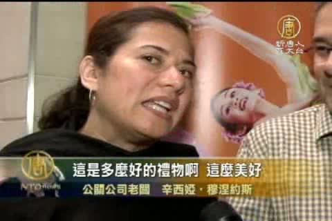 擁有自己的公關公司、參與主辦各種藝術節的辛西婭‧穆涅約斯(Cynthia Munoz, owns a publish relations company in San Antonio)認為神韻的兩位主持人十分有風度。