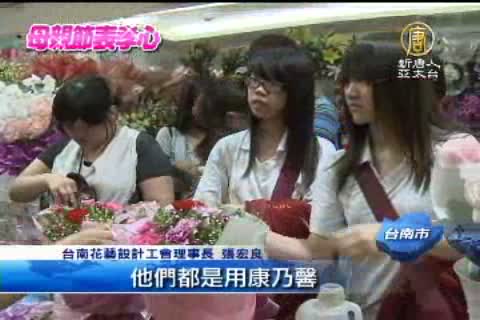 【新唐人亞太台2012年5月12日訊】母親節到了,很多人會想買束康乃馨送給媽媽,但由於上星期台灣各地下大雨,康乃馨產量少了3成,價格去年貴2成,尤其越接近母親節,康乃馨價格越攀升,不過業者說,今年買氣卻比比去年好。以下是我們的報導 。
