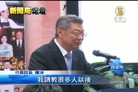 【新唐人亞太台2012年5月15日訊】行政院新聞局為了配合政府組織改造,即將在520整併裁撤。今天(15日)新聞局舉辦惜別會,總統馬英九、行政院長陳沖,以及現任與歷任新聞局長都到場,共同回顧新聞局一甲子的歲月。