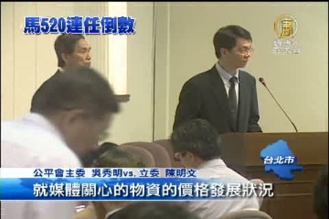 【新唐人亞太台2012年5月17日訊】馬總統四年執政全面檢討,先來帶您看到,民生經濟部分。自從宣布油電雙漲之後,國內物價不斷上漲,就算國際原物料走跌,業者依舊喊漲,立委就批評,公平會功能失調,靠媒體查案,實在很消極,加上線上遊戲大廠遊戲橘子恐怕遭到韓商納克森惡意併購,立委說,政府根本是任由韓商侵門踏戶。
