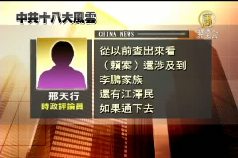 時政評論員 邢天行:「現在判刑其實也就是18大它這個安置人員上,胡錦濤這邊呢基本上已經是大獲全勝了,沒有甚麼任何後顧之憂,賴昌星這個案子到這裡也應該是有個眉目了,所以這個案子在表面上也就是出台了」