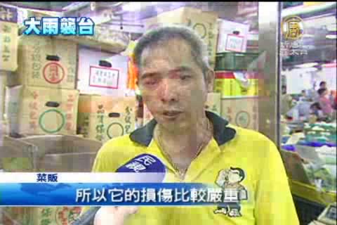 【新唐人亞太台2012年5月20日訊】連續幾天下雨,導致今天(20日)北部的蔬菜到貨量少,價格也上揚,尤其是葉菜類也因大雨的關係,上漲1~2成,民眾抱怨菜價變貴,因此買的量也少了。