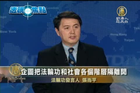 法輪功發言人 張而平:「這一系列的事情說明瞭什麼呢?說明在過去這些年,中共對法輪功的鎮壓,它設法使法輪功妖魔化,就是用錢、用謊言吶,對法輪功進行妖魔化,企圖把法輪功和社會各個階層隔離開,這些企圖全部失敗。而且還說明什麼問題呢,就是在中國這個社會裡,修煉真善忍,法輪功這些好人呢,這社會上的人看的是清清楚楚,這些公開請願,這些簽名,包括周官屯村300多村民按手印要求釋放法輪功學員王曉東,說明大家有個普遍的共識,這些修煉法輪功的人都是好人,都是道德高尚的人。」