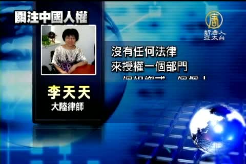 大陸律師 李天天:「沒有任何法律來授權一個部門﹑一個組織﹑或一個個人,可以對街上的這種小攤﹑小販進行管理,沒有法律規守的情況下,那麼這種管理其實都是非法的,如果它有自己的部門規章,或者自己的一些規定,那麼這種規定也是越權的,也是非法的。」