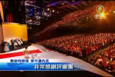 奧地利導演 麥可漢內克:「我很高興自己不孤獨。我有朋友、演員們的陪伴。這樣,我不會在這兒被嚇到。非常感謝評審團。」