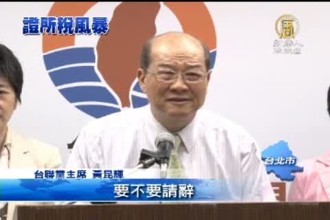 【新唐人亞太台2012年5月30日訊】因為證所稅風波,讓財政部長劉憶如 掛冠求去,今天台聯黨主席黃昆輝與立委召開記者會,強調近來諸多政議政策惹民怨,批評陳冲內閣的溝通領導能力失敗,台聯將號召在野推動倒閣。