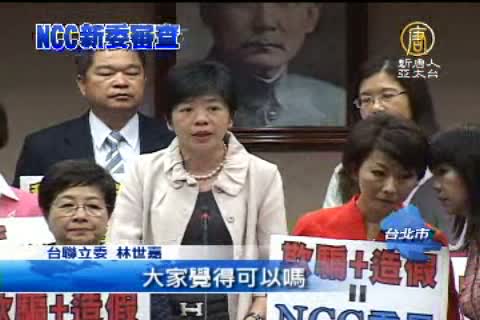 【新唐人亞太台2012年5月31日訊】新聞焦點回到台灣。NCC委員資格審查,過程一波三折。今天(31日)立法院審查會議,在野立委發動杯葛,要求行政院退回名單,重新提名。理由是因為立委認為提名委員資格有很大的爭議,提名過程更是不透明,因此拒絕審查。最後會議被迫中止,延到下個禮拜繼續開會。
