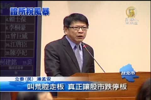 【新唐人亞太台2012年6月4日訊】今天(4日)上午,立法院財委會進行證所稅案初審,新任財政部長張盛和也提早抵達立法院和委員握手寒喧,不過整個上午會場氣氛緊張,立委們程序發言,強烈抨擊新財長到底要捍衛哪個版本,民進黨團甚至要求行政院撤案退回院會。