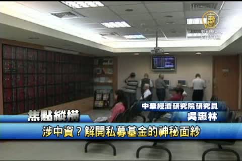 【新唐人亞太台2012年6月6日訊】NCC新任委員的審查過程中,在野立委對4位被提名人提出的諸多質疑,爭議最大的,是曾任職多家國外公司主管的陳元玲,她因為丈夫擔任私募基金負責人,又在大陸及香港設創投公司,被質疑有中資背景,究竟私募基金是什麼?為什麼會與中資介入有關?今天的焦點縱橫,為您解析。