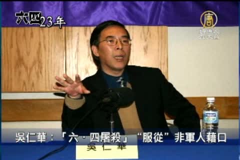【新唐人亞太台2012年6月6日訊】1989年血洗天安門「六‧四」事件23周年之際,有更多的見證者、支持者,要求平反、要求真相。當年的見證者吳仁華,過去20年來關注於搜尋,並發布當年參與的軍人名單;他強調,「執行命令」不能作為開槍的藉口。