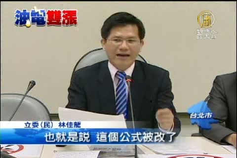 【新唐人亞太台2012年6月7日訊】除了油價, 即將上漲的電價也是人民沉重的負擔。民進黨立委林佳龍今天召開記者會,揭發台電電價調漲違反電價公式,林佳龍表示,立委在審查預算時發現,台電「三階段電價調整案」採用新的電價計算,造成台電投資和採購浪費越大、虧損越大,就轉嫁到民眾的電價上。要求台電必須凍漲6月10號第一階段的電價。