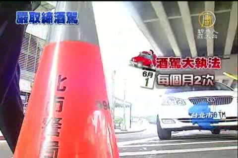 【新唐人亞太台2012年6月7日訊】為了遏止酒駕,警政署宣布從6月1日開始將恢復「全國大執法」,每個月將實行2次全國性酒駕臨檢勤務,並且針對酒駕情形頻繁的五都,每天都有分區攔檢,熱門時段也將加派警力,不論白天晚上都會安排酒駕臨檢。
