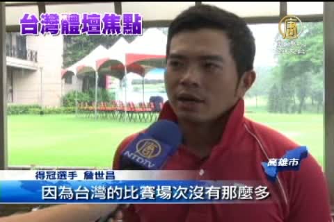 【新唐人亞太台2012年6月11日訊】2012高雄高爾夫公開賽受到大雨影響,大會宣布取消最後一回合,並且依照前兩回合成績排名,年輕好手詹世昌以兩回合總桿低於標準桿八桿的136桿,贏得 冠軍。參賽選手們都認為獎金,名次不是重點,只希望有更多賽事,增加比賽經驗。