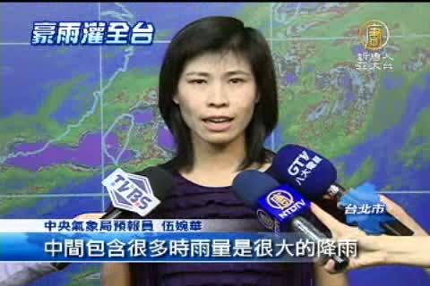 【新唐人亞太台2012年6月12日訊】全台各地陸續傳出災情,氣象局也持續發布豪雨特報。中南部山區過去兩天的累積降雨已經超過上千毫米,北台灣從今天凌晨開始,降雨也相當驚人,其中,以桃園楊梅氣象站測得的瞬間時雨量最大,有122.5毫米。還刷新了1987年氣象站設以來的最高紀錄。氣象局說,這樣大的瞬間時雨量,在未來幾天,還是有機會發生,民眾要特別防範。