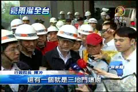 【新唐人亞太台2012年6月12日訊】受鋒面及西南氣流影響,各地因大豪雨,陸續傳出災情。行政院長陳冲今(12)天親自南下來到屏東縣三地門鄉來了解災情,並且前往「台24線伊拉橋」視察,陳冲說,台24線是當地重要命脈,認為「莫拉克重建會」應該督導搶修進度。