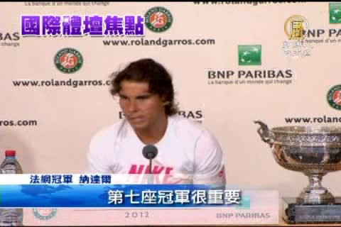 【新唐人亞太台2012年6月12日訊】法網公開賽冠軍納達爾表示他是幸福的,贏得比賽後已囊括了7個法國網球公開賽獎杯。喬科維奇說,進入決賽本身就已是榮耀。