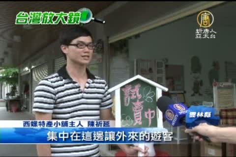 【新唐人亞太台2012年6月13日訊】雲林西螺東市場是由美軍在建造西螺大橋的時候,留下來的廢建材所建造,經過重新打造後,成為西螺藝文和特產中心,最近有對年輕姐弟,在當地開了一家小店鋪,採用時下流行的QR –CODE方式成功行銷西螺特產。