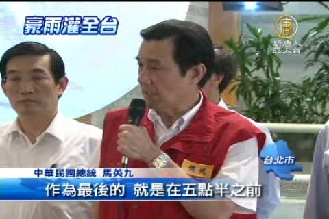 【新唐人亞太台2012年6月13日訊】週二的這場超大豪雨,各地方縣市停止上班上課的標準不一引發民怨。馬英九總統今天(13日)視察中央氣象局時指示,希望氣象局未來在凌晨4時提供豪雨特報和觀測,讓地方政府可以在凌晨5時30分前做出決策公布,民眾可以及早因應。氣象局長辛在勤表示,將遵照辦理。
