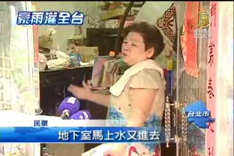 【新唐人亞太台2012年6月17日訊】週六大雨,導致台北市木柵的福興路又淹水,這是5天內的第2次,居民抱怨連連,家裡才剛清完6月12日帶來的垃圾和髒亂,沒想到昨天(16日)又淹一次,已經7、8年沒這麼嚴重,懷疑排水設施不良,才會釀禍。