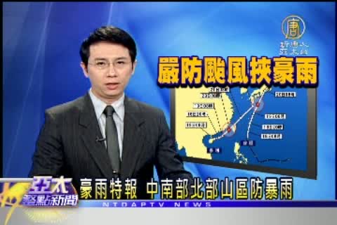 【新唐人亞太台2012年6月18日訊】氣象局很有可能在禮拜二清晨就會發布泰利颱風的海上警報,白天發布陸上警報。另外,中央災害應變中心今天下午提前開設,內政部長李鴻源親自坐鎮聽簡報。除此,氣象局持續發布豪雨特報,提醒中南部山區、北部山區及東北部地區,有發生局部大雨或豪雨的機率,請民眾注意瞬間大雨、雷擊及溪水暴漲,並慎防坍方與落石。