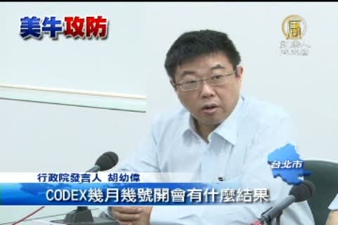 為了處理美牛案,立法院才剛休會,就立刻加開臨時會。在野立委要求放寬瘦肉精,應該比照國際標準,參照7月初聯合國食品法典會議CODEX的結論。對此行政院召開記者會,回應這項說法。