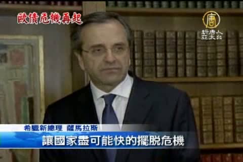 【新唐人亞太台2012年6月21日訊】上週日在希臘大選中險勝的希臘保守派新民主黨已經和 社會運動黨 以及 民主左翼聯盟黨 達成了組建聯合政府的協定。新民主黨領袖 薩馬拉斯 週三得到了總統授權進行組閣,並宣誓就任新總理。新政府的首要任務,就是說服國際債權人放寬 對希臘的紓困條件。