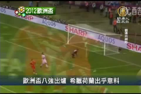 【新唐人亞太台2012年6月21日訊】2012歐洲盃八強名單正式出爐。進入八強的,分別是捷克、葡萄牙、德國、希臘、西班牙、法國、英格蘭、義大利。較令人意外的莫過於黑馬希臘,以及連輸三場遭淘汰的荷蘭。