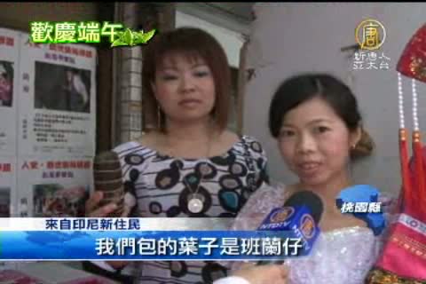 一群身穿異國服裝的新移民,忙著包粽子,端午節前夕談起粽子,還是家鄉味最讓人懷念。
