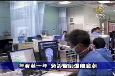 一項調查指出,急診科醫師離職率為一般外科及放射病理科的4到10倍,急診醫師年資滿10年時,就出現離職潮,歷練成熟的急診醫師頭髮還沒白,紛紛離開崗位。調查顯示,體力負荷不來、急診爆滿或急診暴力等職場壓力、個人生涯規畫等因素,是急診醫師退出的原因。