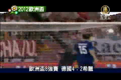【新唐人亞太台2012年6月23日訊】來關心歐洲盃足球賽的最新情況,8強賽中,德國以4比2終結希臘神話,拿下15場連勝紀錄,順利挺進四強,請看以下報導。
