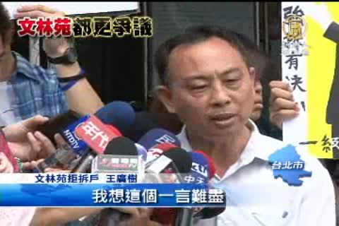 【新唐人亞太台2012年6月25日訊】文林苑都更案爭議至今尚未落幕,士林王家日前對台北市府官員提出毀損罪告訴,今天(25日)首次開庭,卻沒有任何市府官員出庭,讓王家人感到沒有誠意。