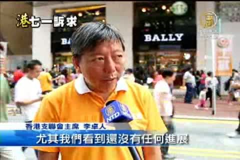 香港支聯會主席 李卓人:「我們希望他可以聽到我們聲音,看到我們示威的群眾,看到我們極度對李旺陽事件的不滿,尤其我們看到還沒有任何進展,李旺陽的妹妹繼續遭中共當局軟禁,也沒有公布任何調查的結果。」