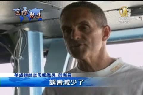 【新唐人亞太台2012年6月25日訊】在為期三天的美韓聯合黃海軍演中,最引人注目的就是美方的喬治‧華盛頓航空母艦了,24號,美方在華盛頓航母上召開記者會,說明這次軍演的目的。