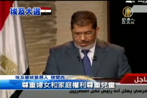 【新唐人亞太台2012年6月25日訊】埃及大選終於有了結果,總統選舉委員會于當地時間週日(24號)下午宣布穆斯林兄弟會競選人穆爾西獲勝。首都開羅的解放廣場聚集了成千上萬等待結果的人們,在確認穆爾西獲勝的瞬間,激動的人群立即開始展開慶祝活動。穆爾西隨後向埃及民眾發表了當選總統後的首次講話,表示他將尊重人權,建立一個平等自由的埃及。