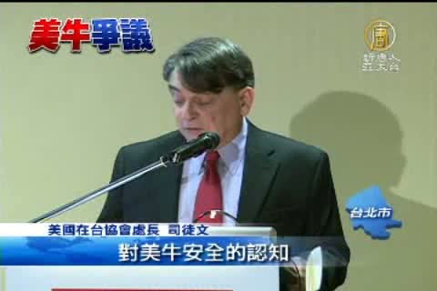 【新唐人亞太台2012年6月27日訊】美國在台協會台北辦事處處長司徒文,即將在8月卸任。今天(27日)司徒文在離任演講時,提到台灣禁止美國牛肉進口,是用政治遊戲誤導民眾。還說美國人不認同台灣立委用「毒牛」比喻美國牛肉。馬總統今天在國民黨中常會上向朝野立委呼籲,希望七月召開臨時會,能盡快通過美牛案。